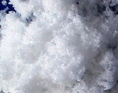 It is also used in consumer HEATING PADS or hand warmers and is also used in hot ice. Sodium acetate trihydrate crystals melt at 58 °C, dissolving in their water of crystallization. When they are heated to around 100 °C, and subsequently allowed to cool, the aqueous solution becomes supersaturated. This solution is capable of super cooling to room temperature without forming crystals. By clicking on a metal disc in the heating pad, a nucleation center is formed which causes the solution to crystallize into solid trihydrate crystals again. The bond-forming process of crystallization is exothermic, hence heat is emitted. The latent heat of fusion is about 264–289 kJ/kg.